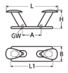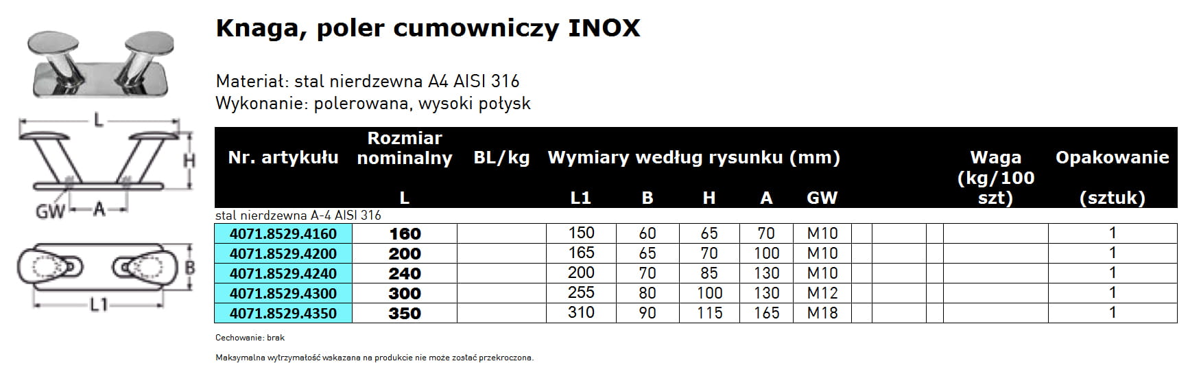 Knaga - Poler cumowniczy INOX A4, dwa otwory montażowe, gwint wewnętrzny