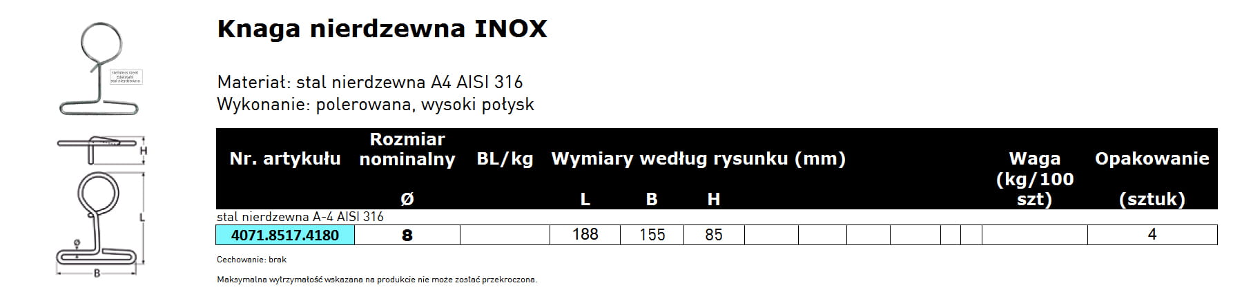 • Materiał: stal nierdzewna A4 AISI-316