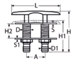 Knaga chowana INOX A4 z płytką kontrującą, dwa otwory montażowe, gwint zewnętrzny