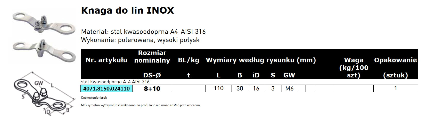 Zacisk do lin INOX, z okiem, stal nierdzewna