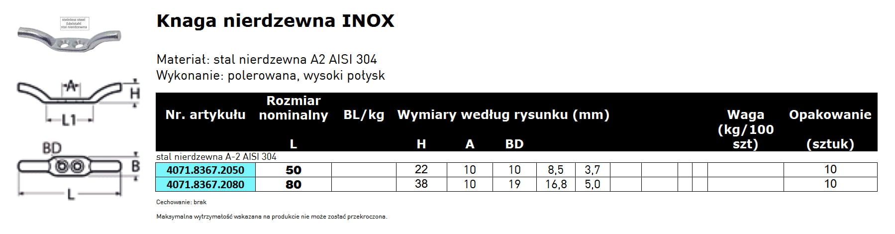 Knaga zaciskowa, INOX A4, kwasoodporna