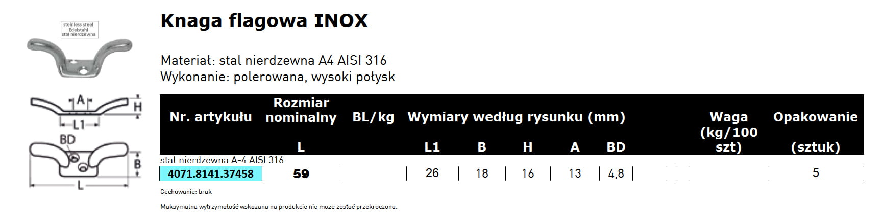Knaga zaciskowa, INOX A4, kwasoodporna