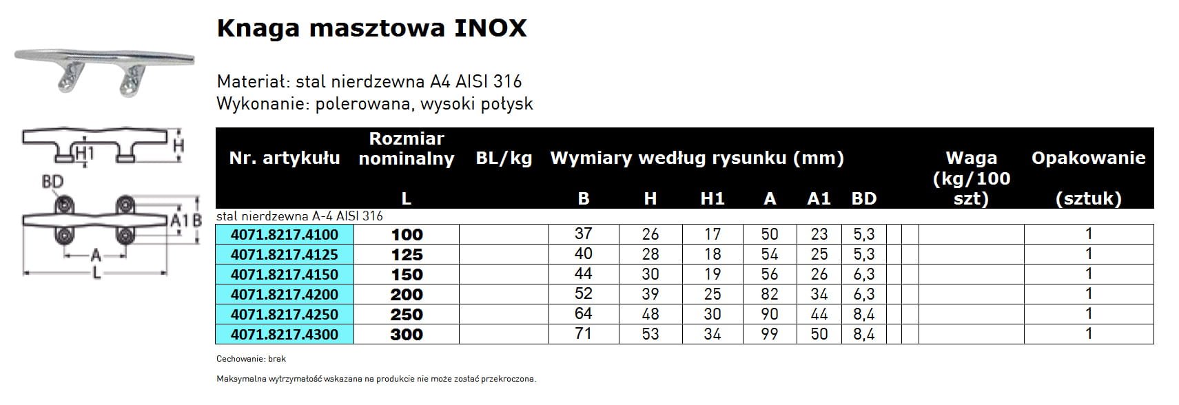 • Ochrona antykorozyjna: stal nierdzewna A4 AISI-316