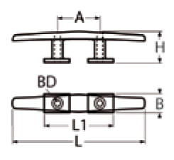 Knaga - Poler cumowniczy INOX A4, dwa otwory montażowe, gwint wewnętrzny