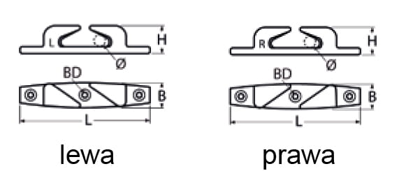 Knaga masztowa płaska, INOX A4, dwa otwory montażowe