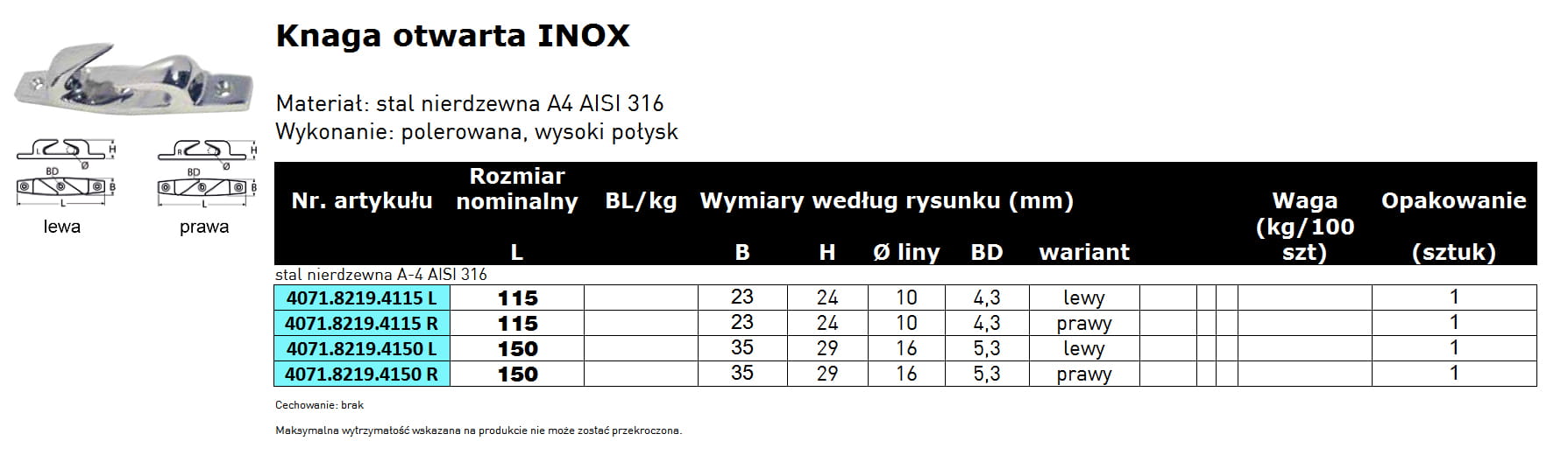 Knaga zaciskowa, INOX A4, kwasoodporna