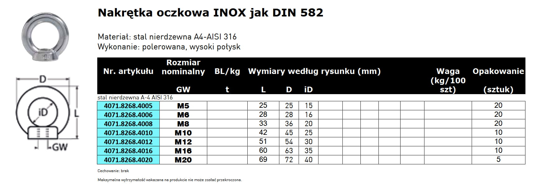 Nakrętka oczkowa z uchem, INOX A4, wzór jak DIN 582