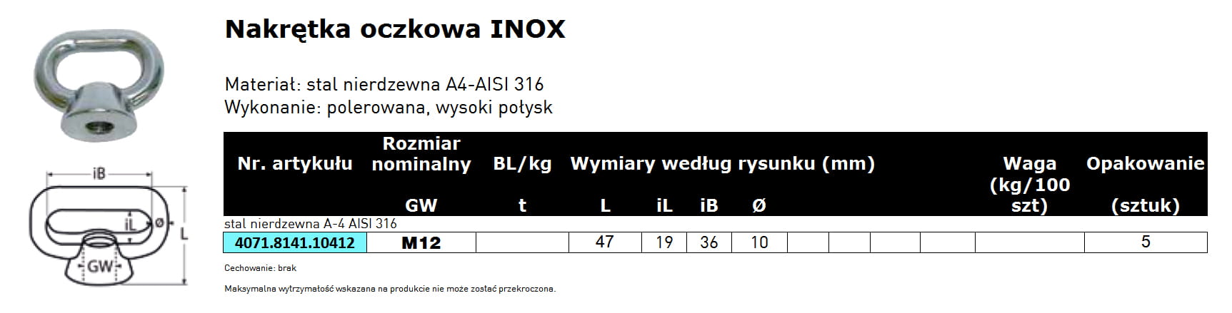 Nakrętka oczkowa z uchem INOX A4