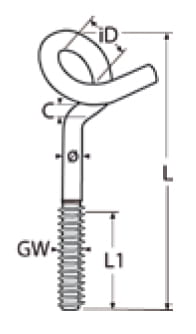 Śruba hakowa, hak spiralny, nierdzewna, gwint zewnętrzny metryczny, INOX