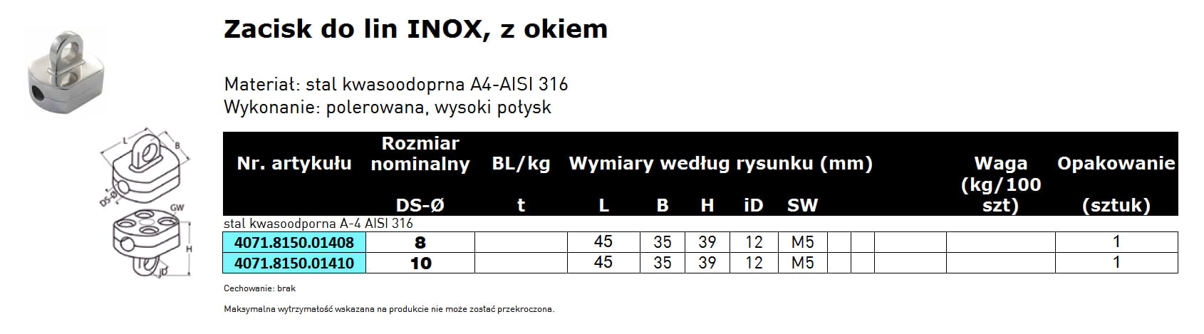 Zacisk do lin INOX, z okiem, stal nierdzewna
