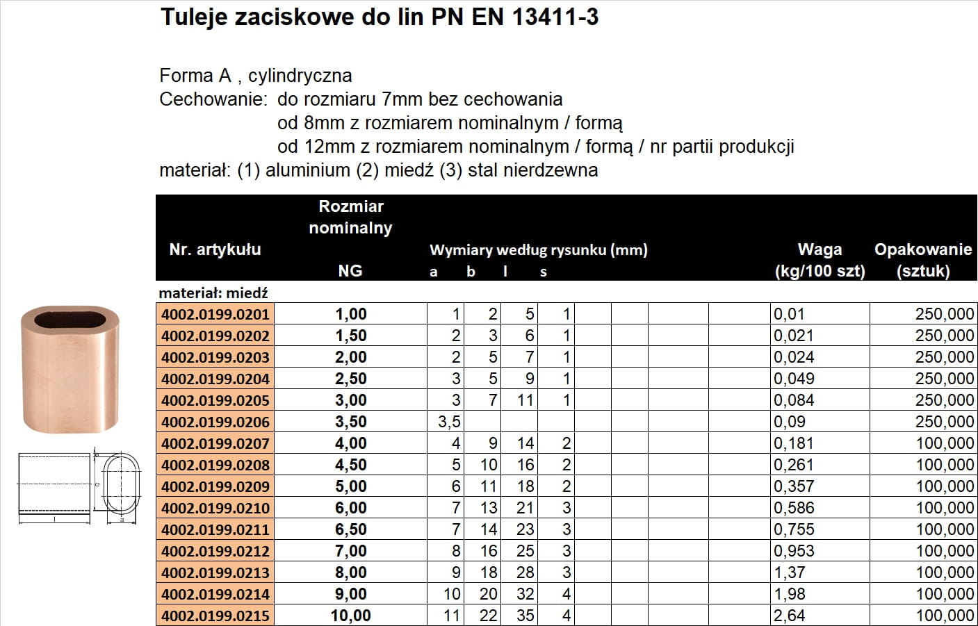 Tuleja zaciskowa do lin typ A PN EN 13411-3